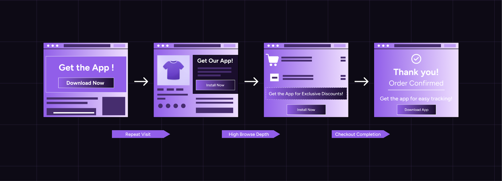 Your install message should reflect the customer’s current relationship with your brand. A first-time buyer and a high-value repeat customer respond to different incentives. When you align the CTA with the lifecycle stage, install conversion improves, and post-install engagement strengthens.