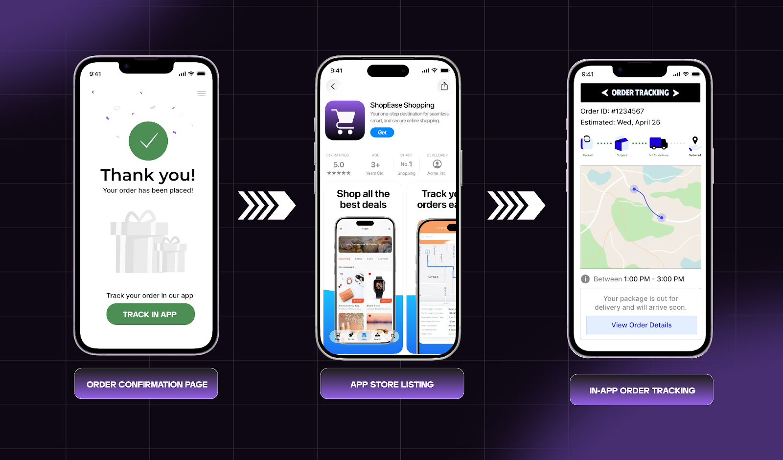 The post-purchase window is one of the highest-converting moments for app installs. The customer has completed payment, confirmed intent, and is actively monitoring their order status.
