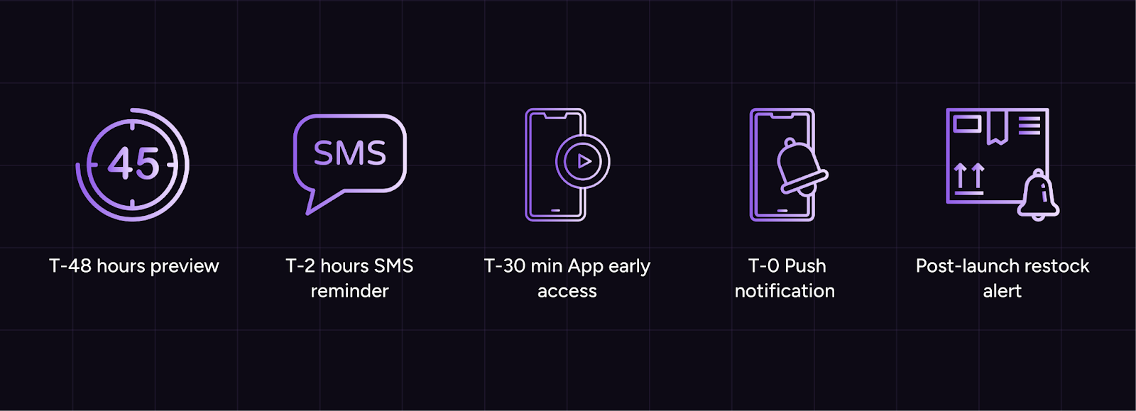 Launches, limited drops, and restocks concentrate demand into defined windows. During these moments, customers actively monitor timing, availability, and access. That behaviour creates one of the strongest opportunities inside your mobile app marketing strategy.