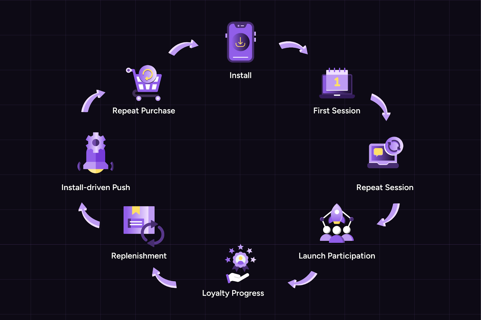 This turns app installs into a lifecycle step rather than a broad user acquisition push. When install prompts reflect where a customer already is in their journey, conversion rates improve and post-install retention holds.