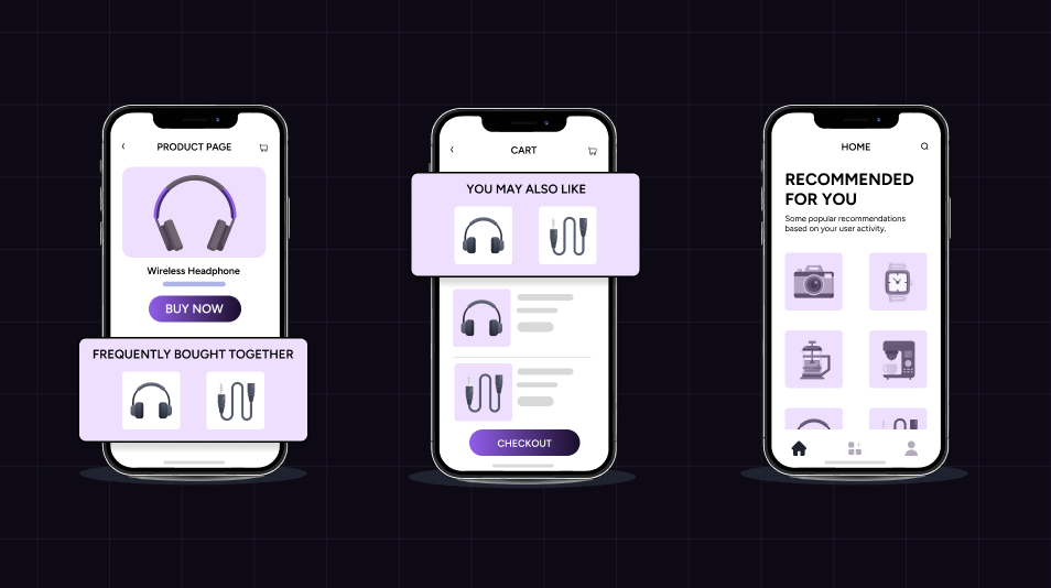 Place these recommendations across key touchpoints, like the home screen, product pages, cart page, and post-purchase screens. Then, support these with behavior-driven triggers: