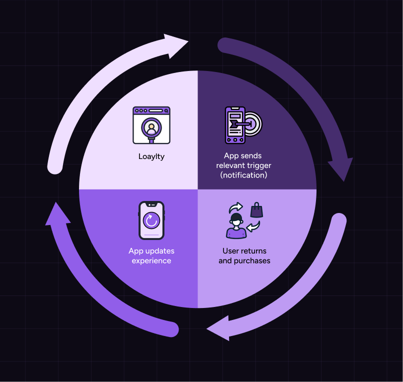 This reduces friction across the user journey. Product recommendations surface relevant options faster, reorder flows simplify repeat purchases, and personalized push notifications bring shoppers back at the right moment. Over time, these interactions build consistency.