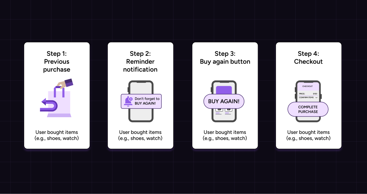 Second-purchase stage: Encourage repeat behavior. Replenishment reminders, product recommendations, and quick reorder options make the second purchase easier and faster.