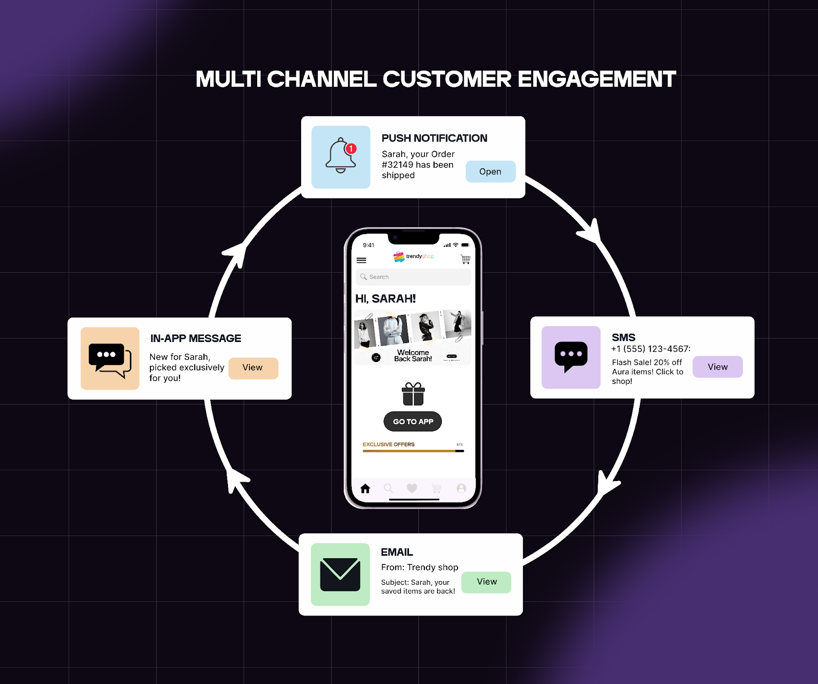 Aligning push notifications, SMS, and in-app messages through shared triggers.