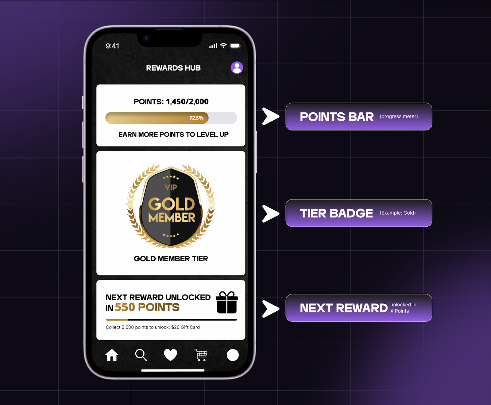Loyalty status: Unlocks tier-based rewards, early access, and exclusive app experiences.