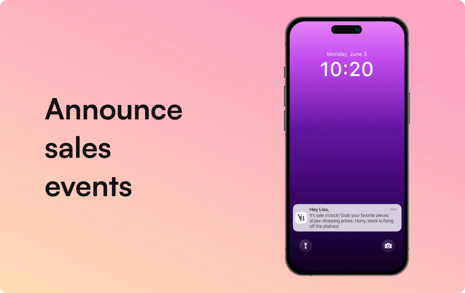 You can send push notifications for instant updates about new products, marketing promotions, sales events, and more.