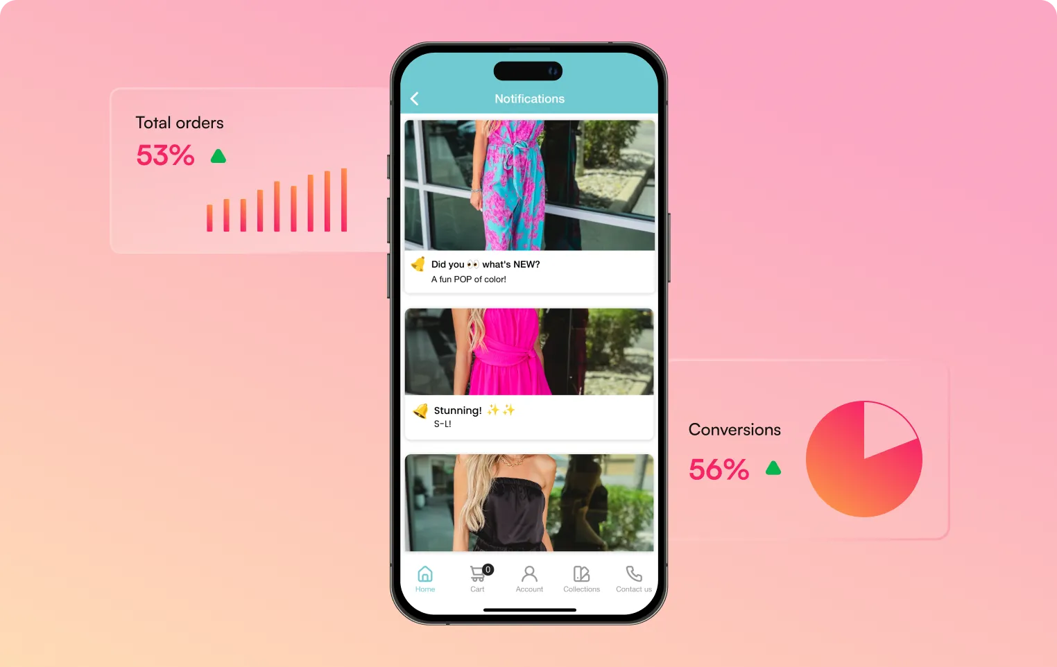 Simply Me Boutique added rich media to their push campaigns and saw a 53% growth in total orders and a 56% boost in conversion rates.